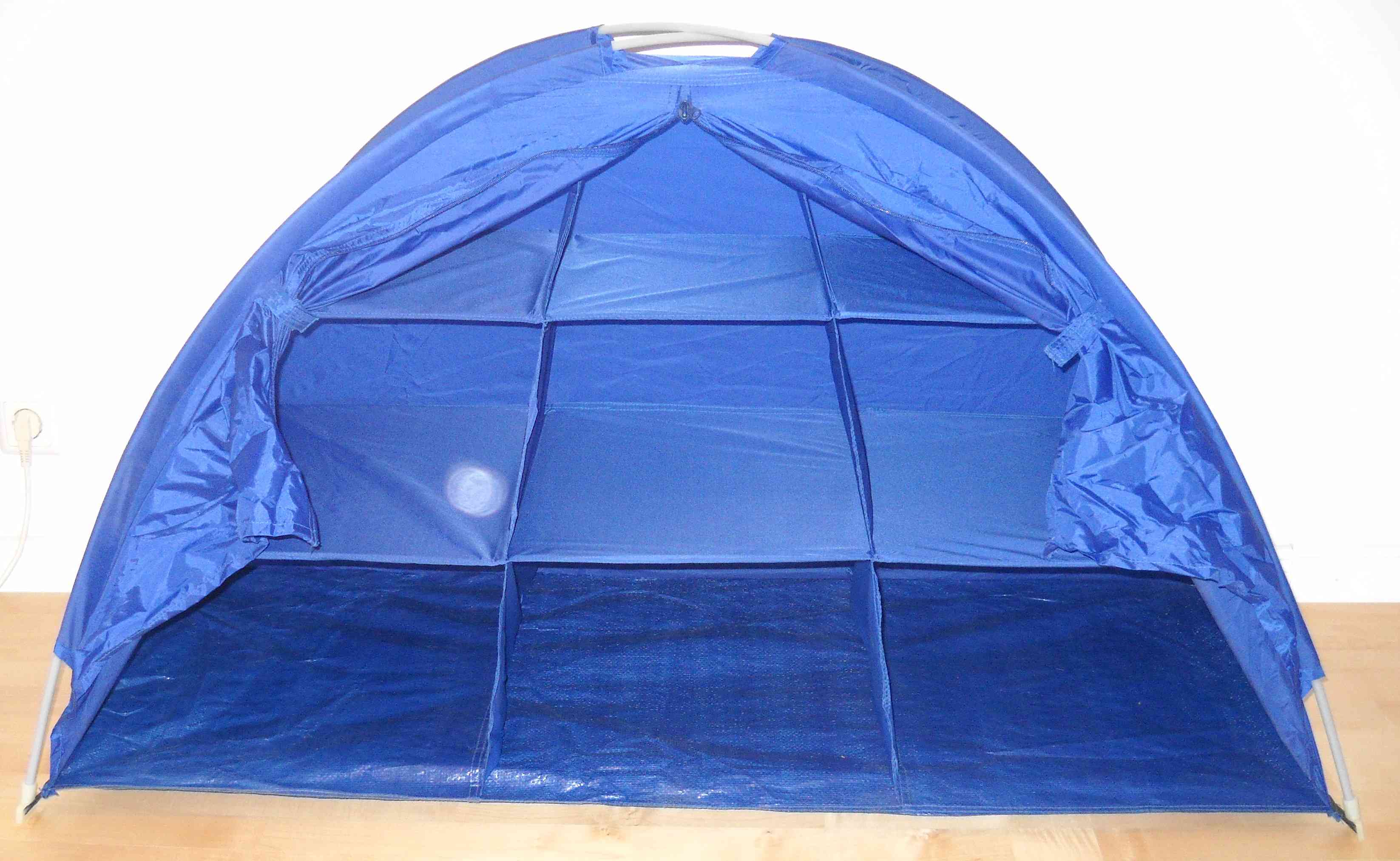 ja, sieht aus wie ein Zelt, ist aber deutlich kleiner. Wenn du genau schaust siehst du auf dem linken Bild zwei horizontale und zwei vertikale Unterteilungen, das sind die Fächer.