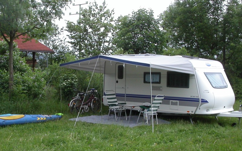 unsere Eroberung ist der erste Wohnwagen, erstanden rechtzeitig vor Ostern 2006. Das Bild ist von der zweiten Ausfahrt zu Christ Himmelfahrt und entstand in Cham (am Regen´, bayr. Wald).