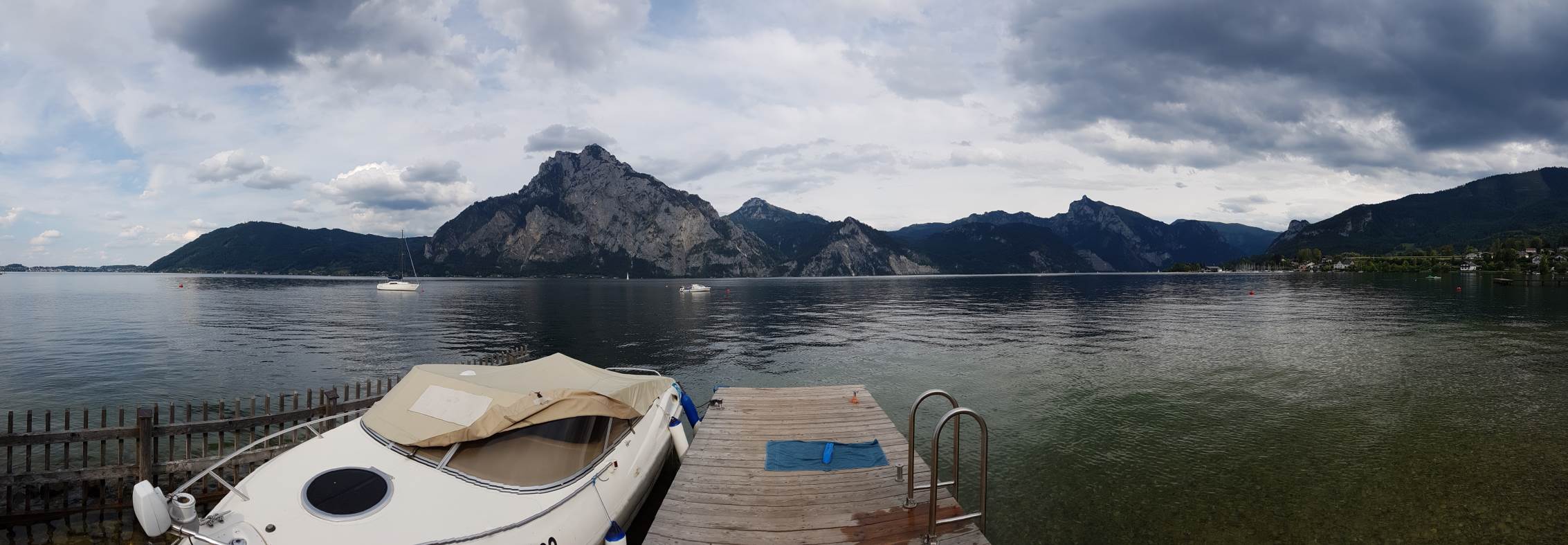 Ist der Traunsee, vom Steg des Campingplatzes aus fotografiert.
