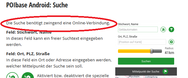 Man muss oder soll zwar, die POI's downloaden um diese "OFFLINE" verwenden zu können,